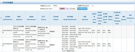 根据CCC证书查询显示,oppo电视目前共有A65U和A55U两大系列,均为冠捷显示科技(厦门)有限公司生产 。但现阶段并没有更多关于oppo电视售价及上市时间的确切消息。