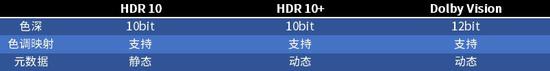色深。通常,电脑、电视以及大多数其他屏幕(包括智能手机上的屏幕)使用的是8bit色深,可以显示1670万种颜色。HDR屏幕的深度为10位或12位,这使得它们可以显示10.7亿种颜色或687亿种颜色。通过上面的表格可以看到,HDR 10和HDR 10+具有10bit色深,而Dolby Vision支持12bit色深。