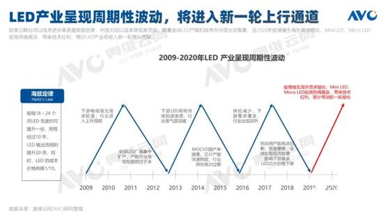 LED产业的发展呈现明显的周期性波动,随着全球LED产能和技术向中国大陆聚集,且诸多利好因素释放:2020年疫情催生海外需求增长;Mini LED及Micro LED投资热情高涨,释放资本与技术红利;一系列推进LED技术研发及配套产业发展的国家支持政策出台;苹果索尼康佳等新玩家跨界押注,注入新资源;消费者对高端科技产品的需求等。