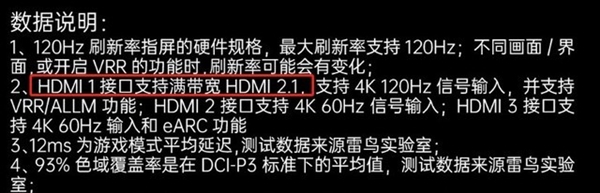 想要实现真正的4K120Hz高刷新率,屏幕、芯片和接口缺一不可。在接口方面,自然需要使用满血版的HDMI 2.1接口,而在屏幕和芯片方面同样要注意一些细节。