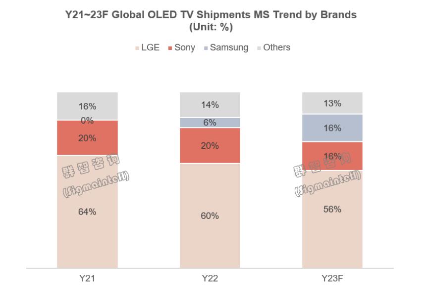 三星在OLED电视市场的“崛起”除了对LG造成压力之外,同样也或将对索尼在OLED市场形成挤压,可能排名OLED电视全球第二之位将被三星替代。
