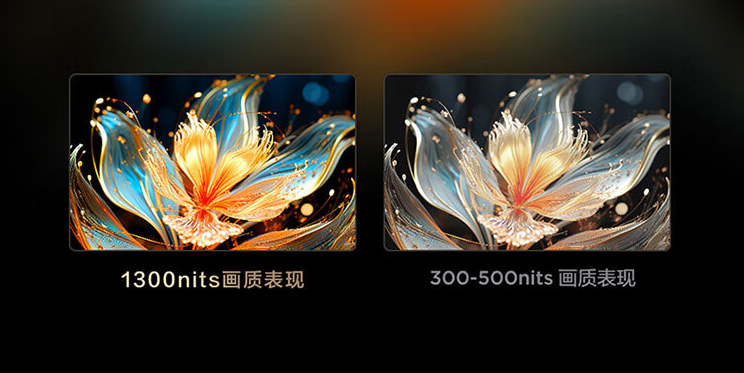 如果电视产品亮度标识不明确,基本可以判定其为一台假HDR电视,而正规大厂推出的电视都会标明其峰值亮度。例如TCL刚刚开售的T7H电视,就有最高1300nits的峰值亮度标注,已经远超一般HDR电视的标准了,可以非常好的还原画面细节,高亮区域足够亮的同时不会牺牲暗部细节。
