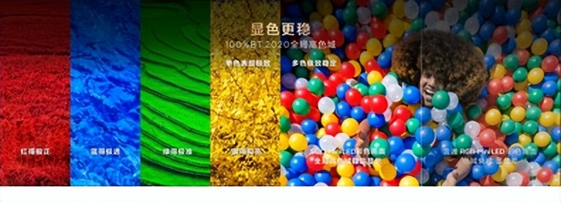 传统RGB-Mini LED显示多色画面时需三色灯珠组合发光,导致色域值下降,同时RGB-Mini LED相邻分区不同色光易逸散串扰,而TCL Q10M Pro背光均为纯净白光,画面边缘锐利清晰,色彩纯净度大幅提升。与RGB-Mini LED的局部高色域不同,TCL Q10M Pro的全局高色域不挑画面,更没有串色问题。显示单色画面时,红得极正、蓝得极透、绿得极准、黄得极亮,每一种色彩都精准还原;显示多色复杂画面时,由于发光方式始终一致,色域值不会出现波动,色彩依旧纯净准确。